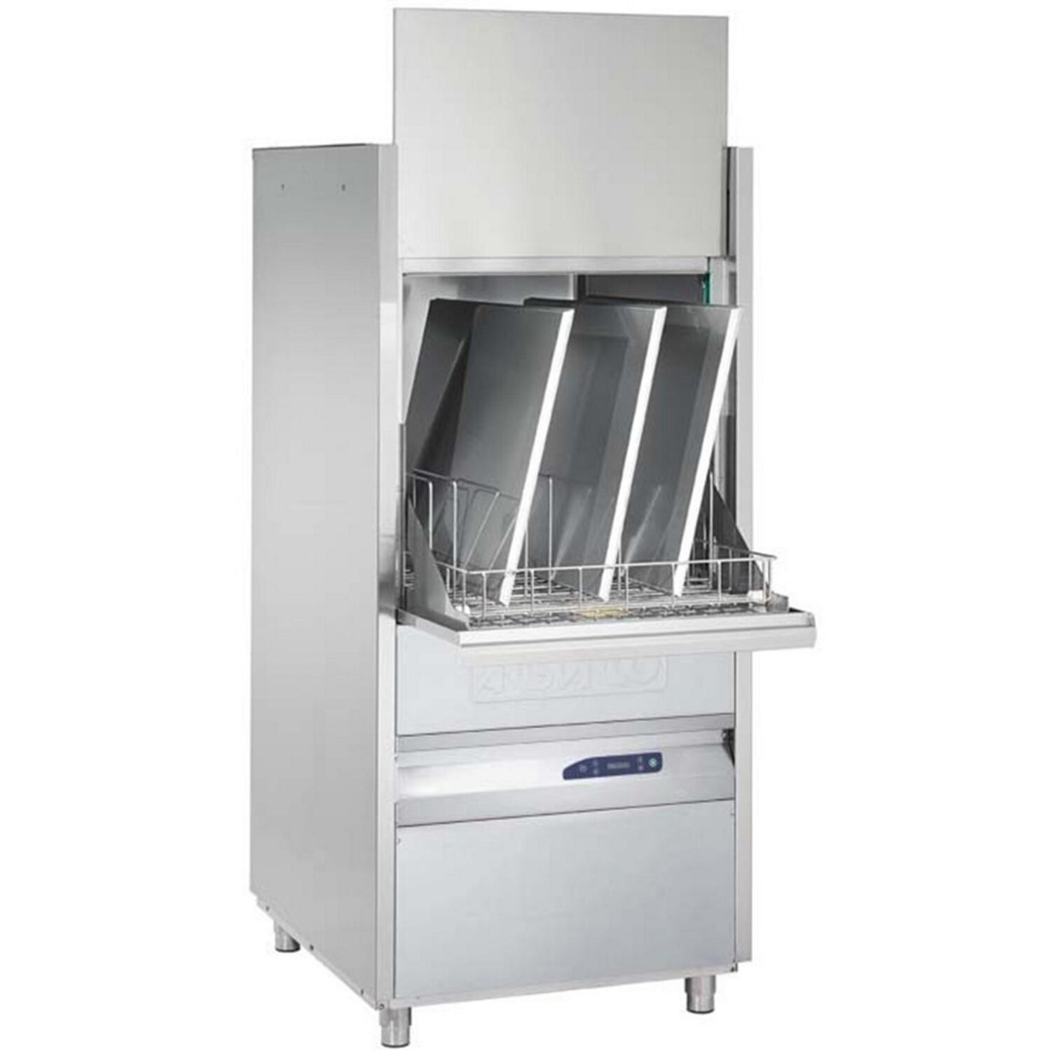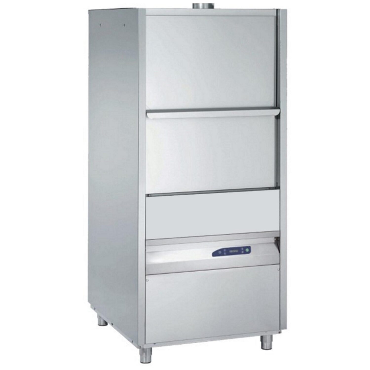 Kastel UK 5580 PRSE Een zeer complete gereedschap vaatwasser, platenwasser, pottenwasser of pannenwasser. Deze hoogwaardige machine kunt u beladen tot een hoogte van liefst 800mm en een korf maat van 565 mm x 690 mm. Uitgevoerd met o.a.: waspomp van 1400 Watt, 4 programma’s en boosterpomp. standaard uitgevoerd met o.a. doseerpomp voor zeep en optioneel een afvoerpomp. Een prima XL vaatwasser voor al uw grote objecten in een bakkerij groentewinkel, slagerij, instelling bedrijfskeuken of horeca gelegenheid.