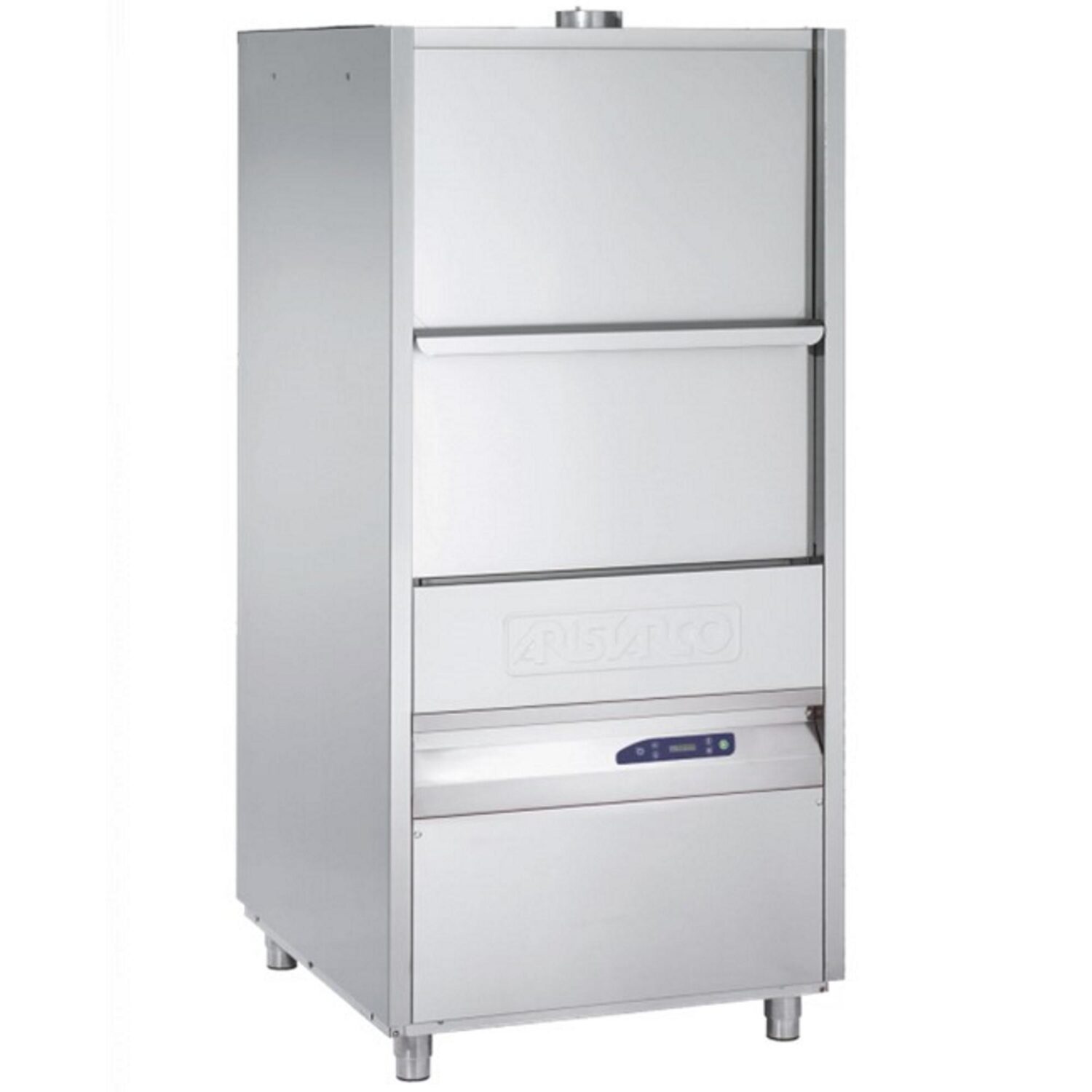 Kastel UK 6565 PRSE Een zeer complete gereedschap vaatwasser, platenwasser, pottenwasser of pannenwasser. Deze hoogwaardige machine kunt u beladen tot een hoogte van liefst 650mm en een korf maat van 600 mm x 815 mm. Uitgevoerd met o.a.: waspomp van 2000 Watt, 4 programma’s en boosterpomp. standaard uitgevoerd met o.a. doseerpomp voor zeep en optioneel een afvoerpomp. Een prima XL vaatwasser voor al uw grote objecten in een bakkerij groentewinkel, slagerij, instelling bedrijfskeuken of horeca gelegenheid.